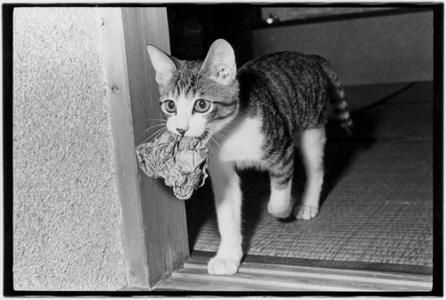 Fukase, however, named this kitten Sasuke and ended up loving him like his own. To Harajuku, on express trains, and even to Ueno Zoo and the seaside - he took Sasuke out with him wherever he went. Referring to himself ‘papa’ while turning his camera upon Sasuke, the depth of Fukase’s affection for his cat can be felt through his photos of its charming visage.