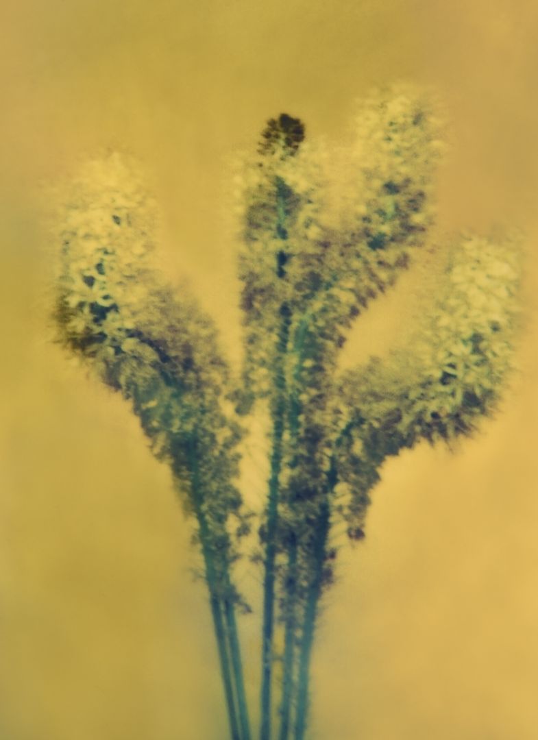 滲むような色、形はポラロイドのインスタントフィルムから生まれています。アクセルバルは過去の記憶に思いを馳せるように一枚一枚、フィルムを剥がしていきます(剥離式フィルム)。その剥がす速度がそのまま写真の色に影響を及ぼしていきます。戻らない時間や記憶を不可逆的な手法で唯一無二の一枚として表現していきます。