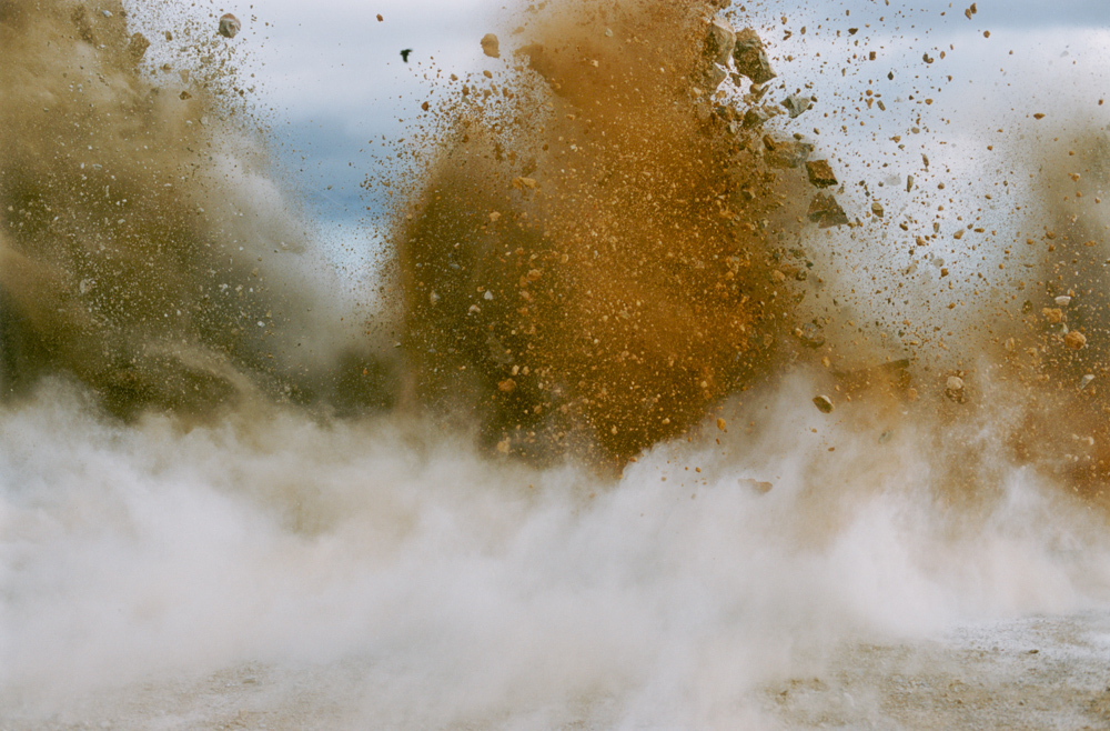 The BLAST series, which captures the moment of blasting in a limestone quarry, was photographed remotely in hazardous sites inaccessible to humans.