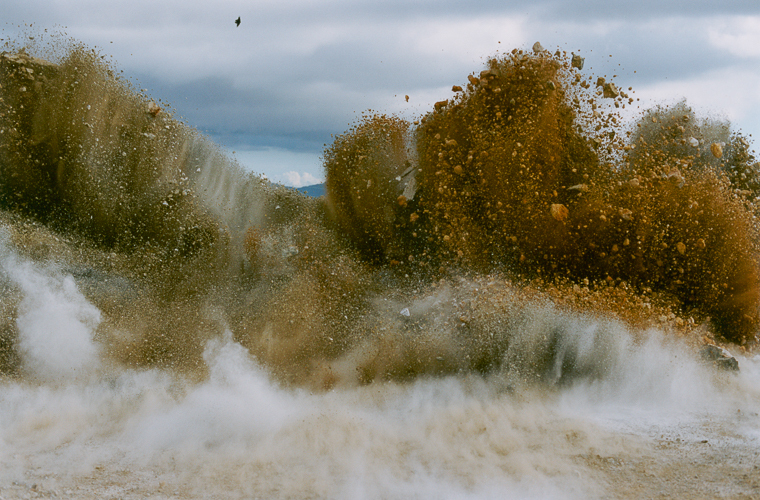 The BLAST series, which captures the moment of blasting in a limestone quarry, was photographed remotely in hazardous sites inaccessible to humans.