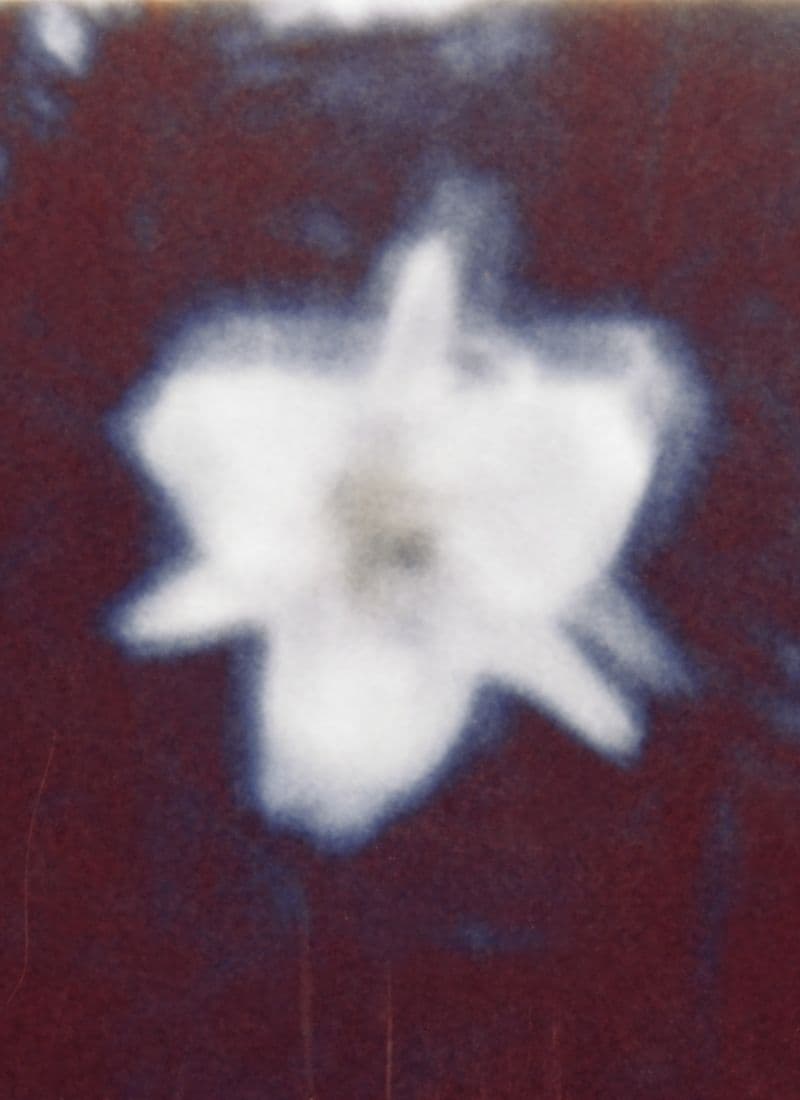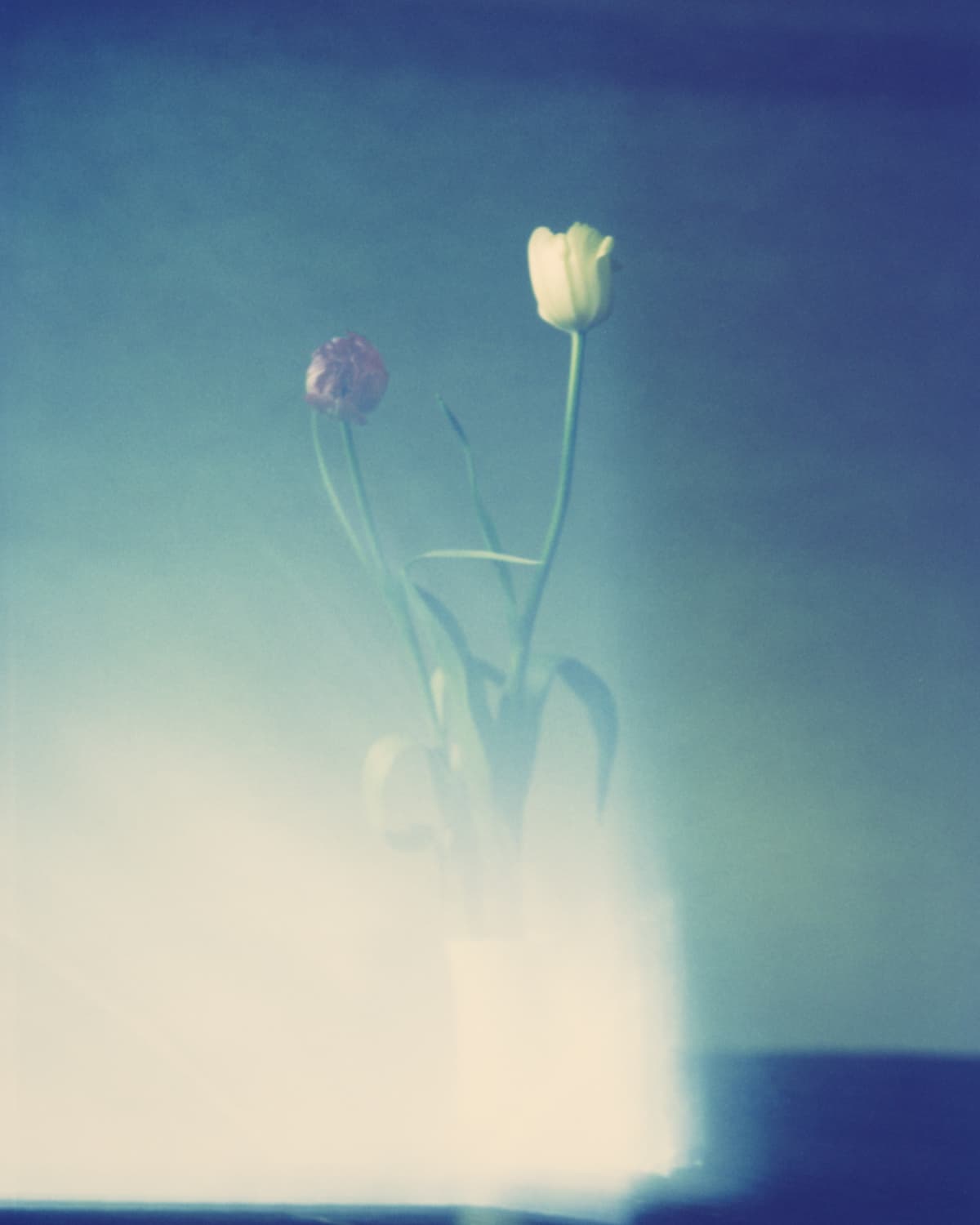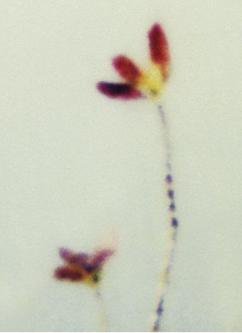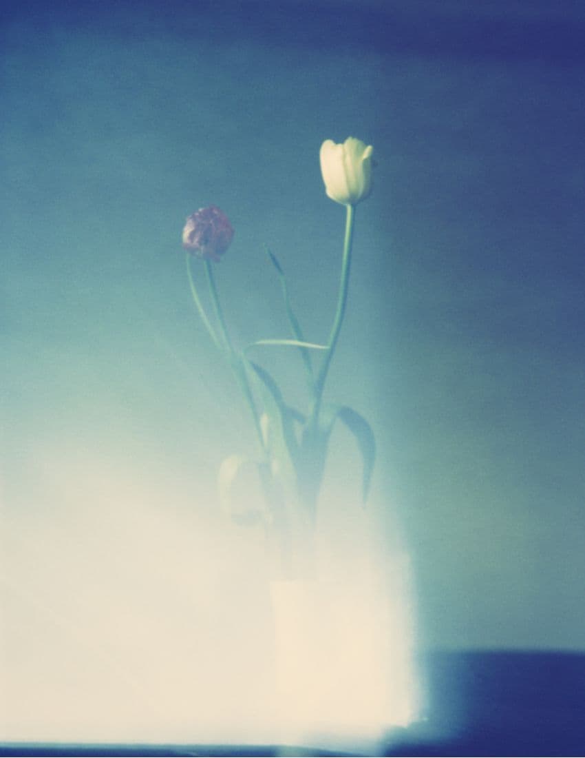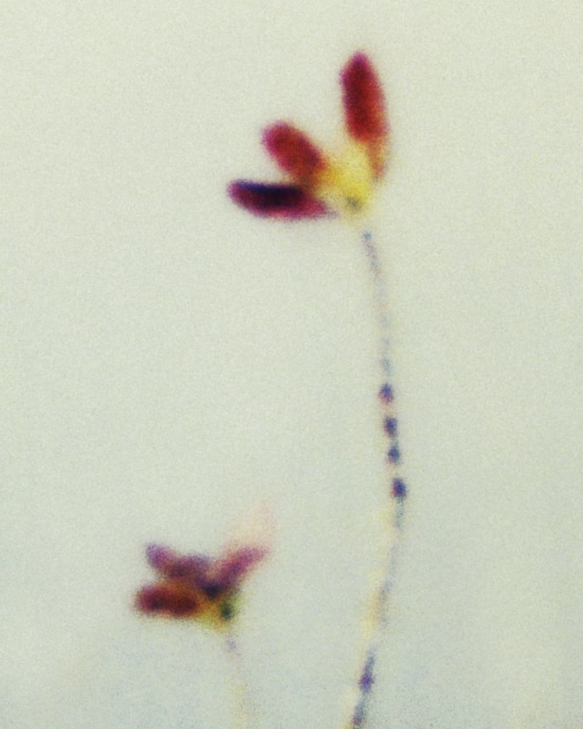 滲むような色、形はポラロイドのインスタントフィルムから生まれています。アクセルバルは過去の記憶に思いを馳せるように一枚一枚、フィルムを剥がしていきます(剥離式フィルム)。その剥がす速度がそのまま写真の色に影響を及ぼしていきます。戻らない時間や記憶を不可逆的な手法で唯一無二の一枚として表現していきます。