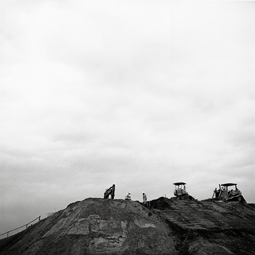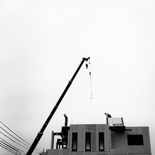 For the series “Rescue”, Noguchi photographed rescue training manoeuvres held by firefighters. Themes of rescue and saving are revisited in Noguchi’s contemporary output, drawing a direct connection between this earliest of her published works and her recent series. In the series “An Axis”, Noguchi’s creative vision transform the world into a coordinate system into which people’s existence is arranged. The effect of these images is a sense of an eternal time that cannot be reconstructed again. For the series “Record of Creation”, Noguchi chose a construction site as the stage. Workers are present in each of the 6x6 photographs; the series appears as a collaborative effort between Noguchi and the workers on the construction site. Lastly, the book concludes with two previously unpublished photographs.
